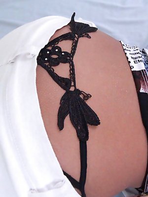 Chubby Divya in black lingerie spreads her labia and her buttocks