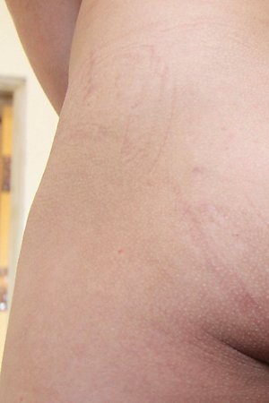 Chubby white skinned Asian girl spreading the labia of her bald pussy