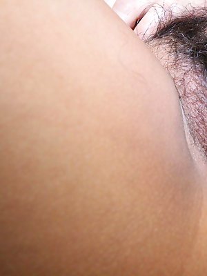 Stunning busty & hairy Thai babe Ning strips to nothingness